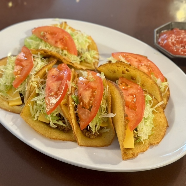 フードのメニューはタコスのみ!パリパリのトルティーヤと、スパイシーなタコスミートの組み合わせが最高で、いくらでも食べられます。
